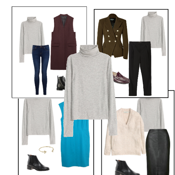 Turtleneck is a winter closet essential. Today let’s talk about styling a simple grey turtleneck into four entirely different looks.
