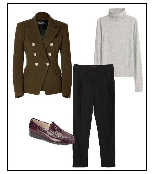 Structural jacket and loafer with turtleneck to create effortless tomboyish chic? Yes, please!